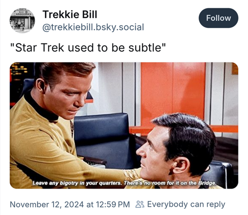 Deceptichum@quokk.auMEnglish · 20 days agofuck the upcoming star trek movie quokk.auimagemessage-square14linkfedilinkarrow-up1337arrow-down10