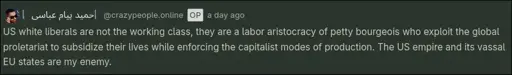 arrow-up14arrow-down1imageI can excuse transphobia and covid denial but I draw the line at anti-communism, and criticism of Xi is racistplus-squarequokk.auTriadTakeTrawler@quokk.auEnglish · 14 days agomessage-square1linkfedilink