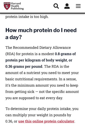 This is Harvard Health Publishing, they say I need about 0.8 grams of protein everyday, now, that means I would have to consume about 70 grams of protein everyday (minimum) to stay healthy, now, I live in India and don’t consume that much, but I consider myself pretty healthy.