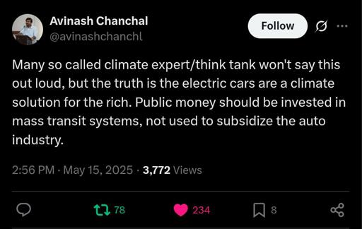 It’s funny because adding more non-car options tends to make using a car more pleasant. But conservatives aren’t known for being smart, correct, or good at long term thinking.