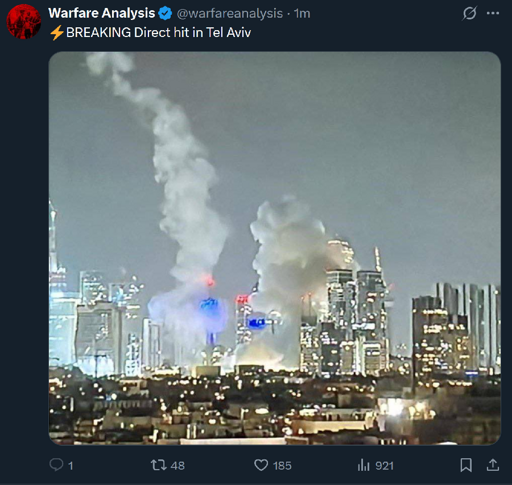 geneva_convenience@lemmy.ml to World News@lemmy.ml · 8 months agoDirect hit in Tel Avivlemmy.mlimagemessage-square200linkfedilinkarrow-up1571arrow-down18