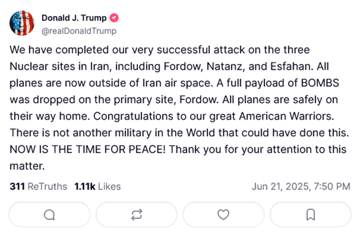 Slight tangent but I feel like it is, or should be, illegal for trump to use truth social while president? Like, that’s his private entity that he’s personally profiting from by making announcements like this on it.