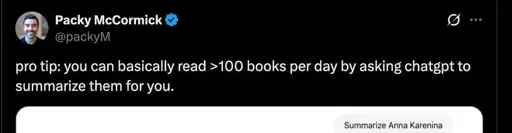 This is why the aitechbrodude will never understand opposition to AI. They don’t understand anything of substance.