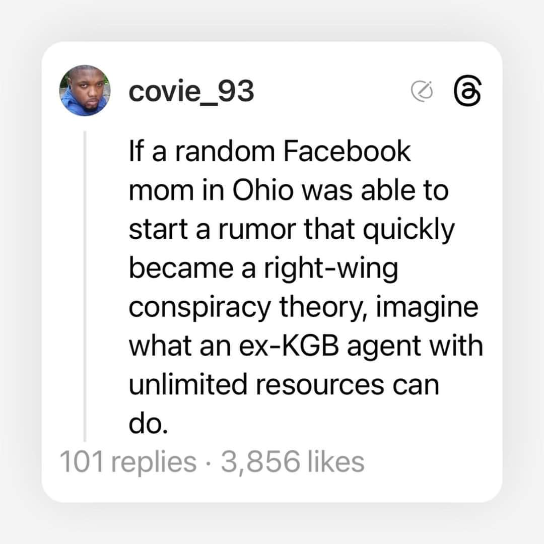 minus-squareMouseKeyboardlinkfedilinkEnglisharrow-up2·1 年前People are hardly ignoring the role of American-owned media in far-right extremism, it’s just that this particular meme references Putin.