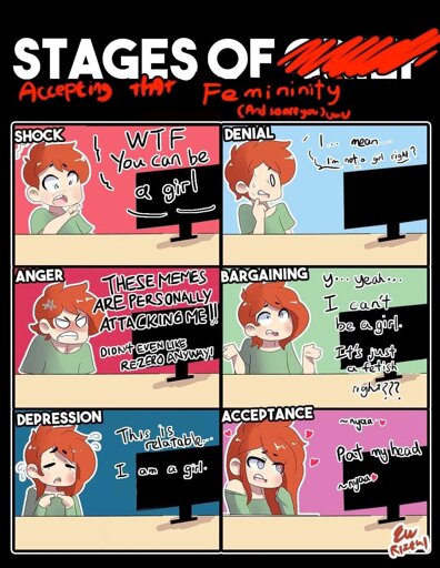 Acceptance (“Okay I definitely feel good about being called ‘it’, so I’m probably agender”)Bargaining again (“Maybe I’m some in-between? Not really cis, but not really enby either?”)