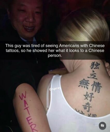 While I’m not a fan of the concept that simply having a tattoo in non Roman characters automatically makes some Instagram bullshit deep, these people don’t, and shouldn’t, give a shit what anyone else thinks of what they do with their body.