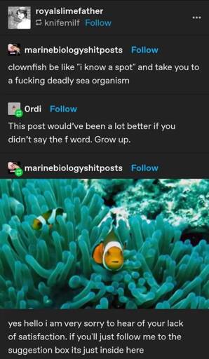 Yeah, they can go eat a fucking ameno… anenomy? ANEMONE!
