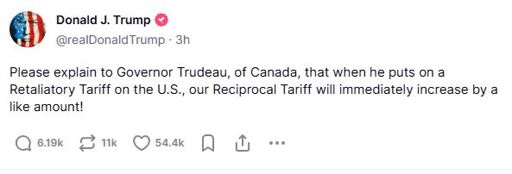 All Trudeau needs to do is implement a reciprocal tariff that also increases by like amount. Boom, now you have an infinite tariff loop and a single transaction in either direction is enough to create infinite GDP.