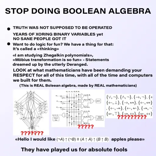 So some guy named George Bool invented Boolean algebra and you really expect me to believe this shit ?
