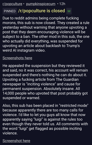 oh yea i know some admins can be the mods. there are 92 mods that own over 500 subs, so i would think they are part of this power group of mods. and then we got the lowly mods of the regular subs. i heard about the blanket shadowbans in another site, they still do that to people who had100s of accts, but it also hit regular people too, that dint even violate a policy, so im thinking its an AI doing all these bannings and so many innocents are just caught up, and they cant even repeal it.