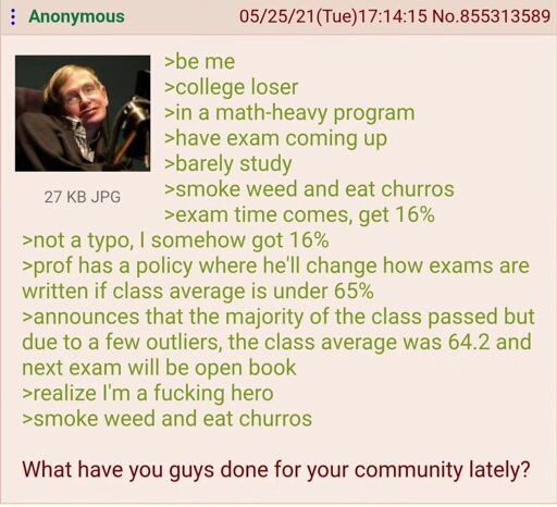 Also I once scored a 3 out of 200 on a final exam and failed the fuck out of a class.