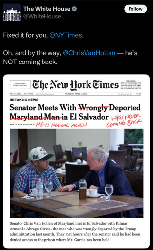 The first word I’d remove is “Deported”. Reporters, editors, citizens should stop using the crimebosses’ lingo & framing. Mr. Abrego García is a (noncriminal) US resident. He wasn’t deported. He’s a first-generation American, #ABDUCTED by thugs, #TRAFFICKED by armed mercenaries, to a FOREIGN #tortureprison for profit, #slavery, #disinfo and #disruption.