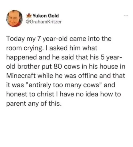 And if it’s just a genuine emotional breakdown, whatever the cause, I remember back to when I did that as a kid and was met with a cold response, and I stop what I’m doing and hold them until they feel better.
