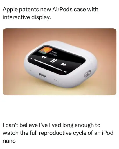 I tried a pair of earbuds with the same idea from AliExpress. They had the regular controls, but also worked as e.g. a camera remote. Very cool if it had done anything it was supposed to do consistently, but unfortunately it was not well-implemented. If the AirPods Pro 3 (which I was already strongly considering) have a case with a screen that isn’t much larger than the Pro 2 case, I’ll probably buy that model.