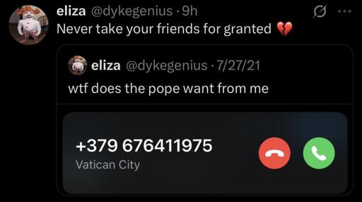 HELLO. YOU’VE BEEN SELECTED AS…(raspy trucker voice) “Da next Pope”…PRESS 1 TO ACCEPT. PRESS 2 TO SPEAK TO A CARDINAL.
