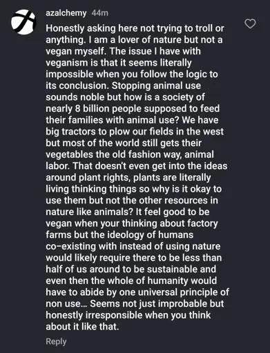 arrow-up145arrow-down1imageYapper has things to say about veganismhexbear.netAngel [any]@hexbear.net to vegan@hexbear.netEnglish · 8 months agomessage-square44linkfedilinkfile-text