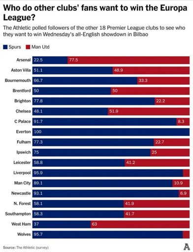 100% in favour of Tottenham is still pretty crazy though. The fact Liverpool FC isn’t even the biggest Manchester United hater in their own city is pretty funny.