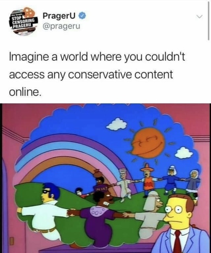 Someone added that to the PragerU post? Because I can’t imagine PragerU posting a Utopian image with that text. PragerU are worse than Fox “Newz”.