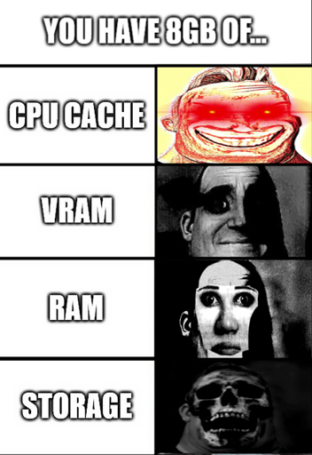 In university, they stopped giving out software licenses for personal machines in favor of letting students connect to virtual machines they hosted. They allocated 8GB of RAM which wasn’t horrible at the time, but they only allocated 4GB of storage. Only time I’ve ever seen that ratio.