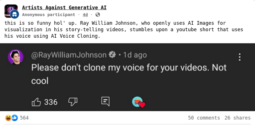 ThefuzzyFurryComrade@pawb.socialM to Fuck AI@lemmy.world · 7 months agoRules for Thee and Not for Mepawb.socialimagemessage-square45linkfedilinkarrow-up1622arrow-down125file-text