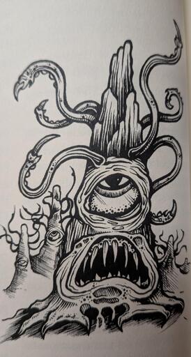 Thats a roper. It disguises itself as a stalagmite and uses its long tentacles to grab you and pull you to its mouth.