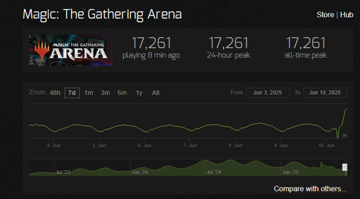 Steam saw 6,000 additional active users, a 50% increase, and I honestly don’t know if that’s a signal that the crossover is a big hit, but that number seems really low overall to me. Fortnite is seeing ~6M average actives for reference. Maybe Steam doesn’t account for a very high % of the installs, so assuming a 50% increase in players in Arena is a massive jump, but to the original point, if you’re a fan of FF why wouldn’t you try a FTP game that features cards from the game? How much of it will you try is the real question.