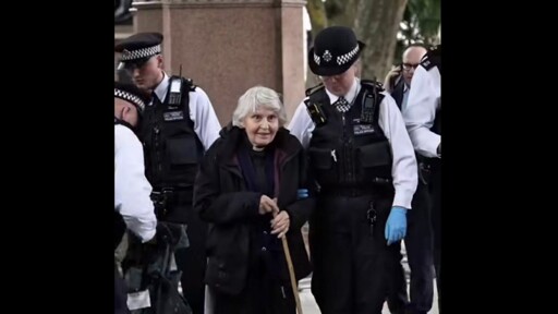 The Reverend Sue Parfitt, from Bristol, was detained for holding a placard that read: “I oppose genocide. I support Palestine Action.” She was among more than 27 people arrested on Saturday for acts of defiance against the proscription.