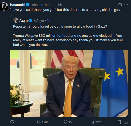 Yes, Harris and Biden were/are absolute shit. Without being able to see into an alternate universe, I’m pretty sure there’s more people dead than would have been under what was the already terrible status quo. The current regime is making things worse than it already was, which is a hard bar to clear. It’s suffering all around, in Gaza and in the US, and across the poverty stricken areas supported by USAID.