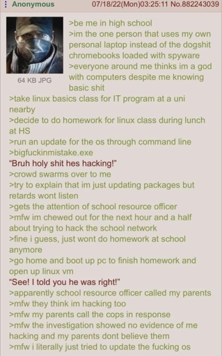 arrow-up1497arrow-down1imageAnon updates GNU/linuxlemmy.worldindividual@toast.ooo to linuxmemes@lemmy.world · 6 months agomessage-square63linkfedilinkfile-textcross-posted to: greentext@sh.itjust.works