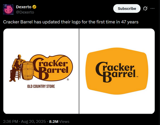 Cracker Barrel, as a simple restaurant chain, is limited as a brand. Cracker Barrel as an experience, well that can be anything. They can pivot into anything that vaguely instills the same nostalgic feeling, and if the groundwork has already been done, then consumers won’t be confused or alienated when Cracker Barrel starts selling cars or something. So more and more, Cracker Barrel isn’t a particular thing, it’s an idea. The capitalist tendency toward monopoly necessitates this result, as the very point of branding is to convince you that two identical commodities are in fact distinct and not interchangeable.