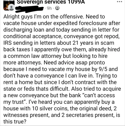 arrow-up1290arrow-down1imageSovcit is getting foreclosed on, will buy a new house with 10 silver coins.lemmy.worldBonesOfTheMoon@lemmy.worldM to InsanePeopleFacebook@lemmy.world · 5 months agomessage-square122linkfedilink
