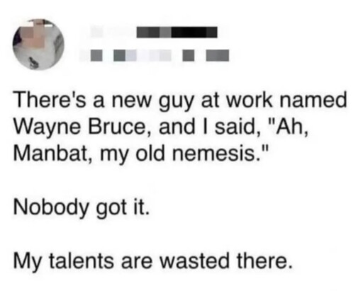 I got it right away, but an even smaller amount of people would realize that there is a Manbat, a villain opposing Batman.