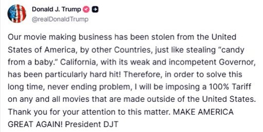 You can’t tariff a film shoot. Tariffs are taxes on imports. You’re not importing anything when you go somewhere to shoot? Footage is all just data, not a physical object you go and retrieve.