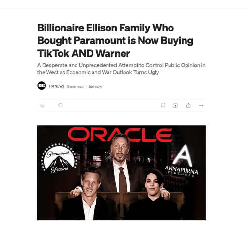They almost had the bravery of saying Zionist Supremacist motives. They did mention palestinian/gaza message control but the angle is stil billionare oligarchy alone. From Christofascist/MAGA gaslighting of the right for Zionist supremacism or DNC/Chuck Schumer gaslighting of the left for Zionist supremacism, every oligarch who gets on board gets rewarded. Ellison supports Zionism, and media control is to strengthen Zionist control. OP dancing around this doesn’t help, and in fact distracts from actual motives.