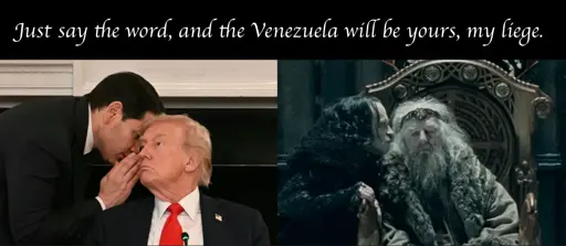 arrow-up1140arrow-down1imageJust say the word, and the Venezuela will be yours, my liegeinfosec.pubcm0002@infosec.pub to Political Memes@lemmy.ca · 3 months agomessage-square3linkfedilink