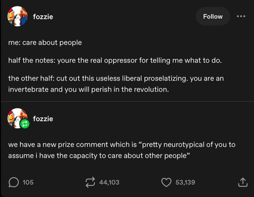 arrow-up1237arrow-down1imageYou're the Real Oppressorlemmy.worldOptional@lemmy.world to tumblr@lemmy.world · 1 month agomessage-square22linkfedilink