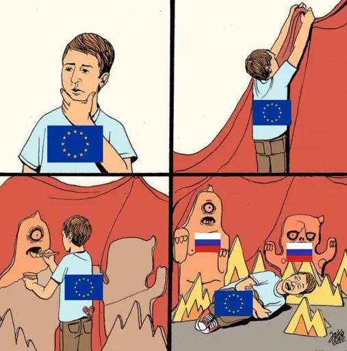 Considering how the eu is destroying itself to keep the wealth transfer to the bilionaries going and how their politicians and large ammount of the population completelly accepts ‘Russia bad’ as the biggest fact out there, it will not surpise me in the least if Russia does end up (having to) invade europe to put a stop to them.