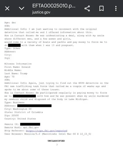 I don’t understand the format the document follows. Epstein is named under “subject” and Trump is named under “witness”. But the bit under Trump says he ‘paid money’ so it is likely it is about Trump himself.