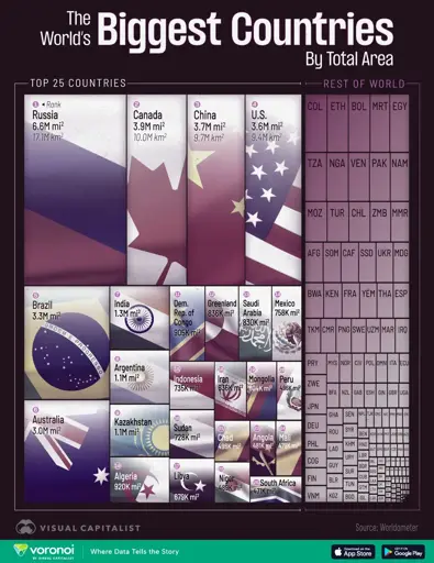 noumenon@lemmy.world to Geopolitics@lemmy.worldEnglish · 15 days agoWorld's Biggest Countries By Total Arealemmy.worldimagemessage-square3linkfedilinkarrow-up18arrow-down10cross-posted to: dataisbeautiful@lemmy.world