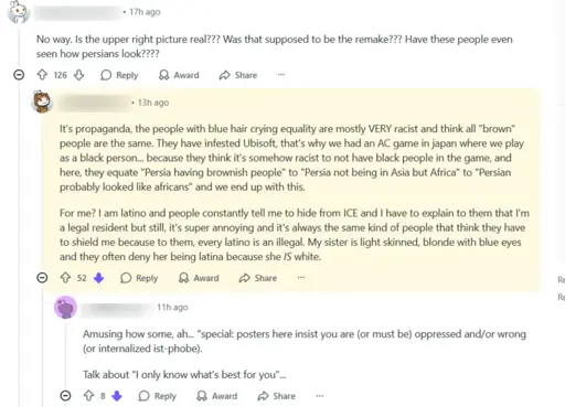 powerstruggle@sh.itjust.worksM to stupidpol@sh.itjust.works · 4 days agoAnti-woke redditors defending the militarization of ICE because he is legal latino and blaming the workers for wokeification and defending the owners and CEOs of the gaming companies.sh.itjust.worksimagemessage-square2linkfedilinkarrow-up11arrow-down10file-text
