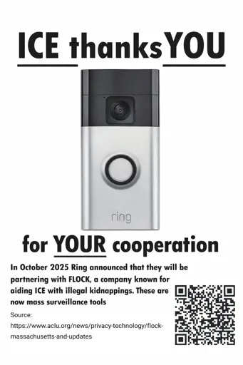 minus-squareworkerONE@lemmy.worldlinkfedilinkarrow-up14·1 month agoFlock is going to offer facial recognition services to the cities that have flock cameras already installed. Adding ring cameras just adds to the ability of their network. Privacy nightmare