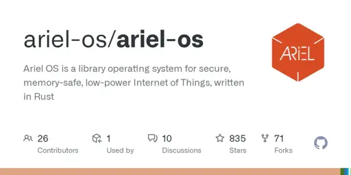 cm0002@digipres.cafe to Operating Systems@beehaw.org · 2 days agoAriel OS is a library operating system for secure, memory-safe, low-power Internet of Things, written in Rustgithub.comexternal-linkmessage-square0linkfedilinkarrow-up18arrow-down11cross-posted to: librebyte@lemmy.mllobsters@lemmy.bestiver.se