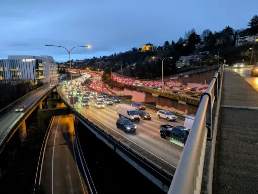 “The impacts are everywhere. Travel times on I-5 north and south have ballooned. City streets are clogged with drivers inching toward on-ramps. And that congestion is spilling over into increasingly unhinged motorist behavior: racing through residential neighborhoods, driving into oncoming lanes, forcing their way into the front of lines, running red lights, and speeding to claw back lost time.