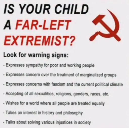 Unruffled [they/them]@lemmy.dbzer0.com to agitprop memes for anarchist dreams@anarchist.nexusEnglish · 2 months agoIs your child far left?lemmy.mlimagemessage-square0linkfedilinkarrow-up11arrow-down10file-textcross-posted to: politicalmemes@lemmy.worldcommunism@lemmy.ml