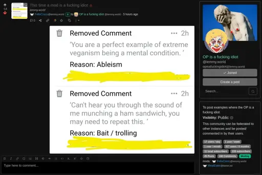 Today, I removed some comments from a user (let’s call him “FelixCrass” to safeguard his identity) in another community I moderate (context).