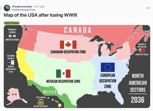 arrow-up150arrow-down1imageMap of the US after losing world war 3lemmy.worldSine_Fine_Belli@lemmy.world to 2 North American 4 You@sh.itjust.worksEnglish · 18 days agomessage-square12linkfedilinkfile-textcross-posted to: YUROP@feddit.orgehbuddyhoser@sh.itjust.works