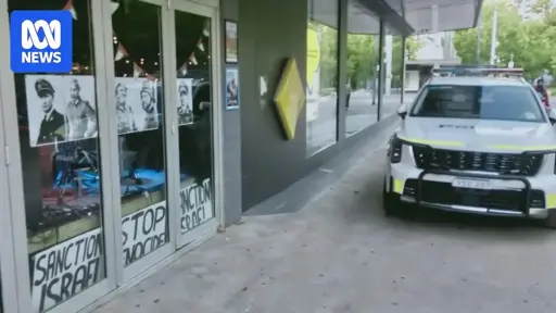 Police have seized five posters depicting world leaders in Nazi-like uniforms from the window of a Canberra bar.