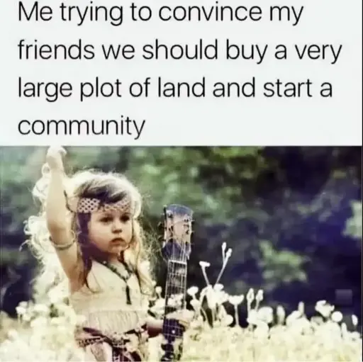 minus-squareWhatSaid@lem.ugh.imlinkfedilinkarrow-up16arrow-down1·5 days agoI tried commune life, would not recommend. I’d suggest an RV park/tiny house neighborhood, that’s the best way to get something that could meet most people’s needs and might actually be stable and sustainable. And have a community garden.