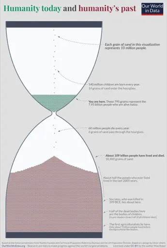 The visualization is strange for this because the hour glass implies that the is a finite number of humans that can live but at the same time it is refilled from the top continously.