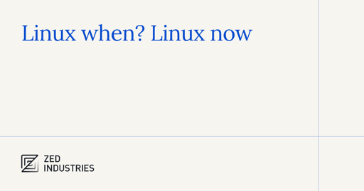 arrow-up130arrow-down1external-linkLinux when? Linux now. - Zed Blogzed.devGravitySpoiled@lemmy.ml to Rust Programming@lemmy.mlEnglish · 1 year agomessage-square1linkfedilink cross-posted to: linux@programming.devzed@programming.devprogramming@programming.devfoss@beehaw.orglinux@lemmy.ml